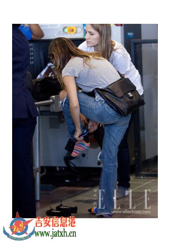 每天坐地铁过安检一定让你很不耐烦吧?看了Rachel Bilson的遭遇你就可以求得平衡了,看人家一堂堂的大明星,安检时还得脱了鞋检查,幸好彩虹色的袜子还蛮潮的,就算亮出来也不会影响她街拍达人的称号。