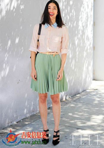 名人一定要买名牌货吗?那可不一定!坦言上衣与百褶裙均来自ebay的资深杂志人Caroline Issa,用清爽的配色搭配一头黑发,复古红唇也值得东方女生参考。