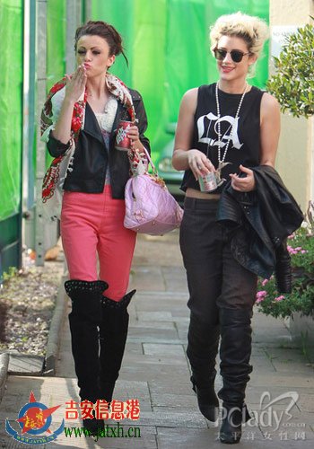 Cher Lloyd以最抢眼的朋克装扮出现在镜头前,有着丰富色彩的流苏围巾与霓虹色调的紧身牛仔裤是绝佳的搭配,缀有铆钉装饰的长靴让“浪荡子”气息十足的机车夹克更添酷感味道。
