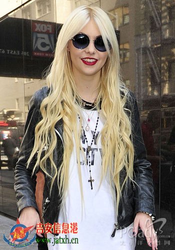 风头正劲的Taylor Momsen一会儿接拍麦当娜和女儿 Lourdes Leon开设的时尚品牌“物质女孩”的时装大片,一会儿又进军摇滚乐坛。朋克范儿十足的她最喜欢以金色长发+机车风夹克+网纹吊带袜现身,这次叠搭的项链有着标志性的十字架坠饰,金属材质更显酷辣劲儿十足。
