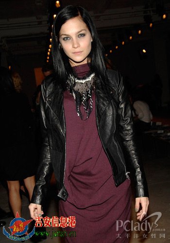 纽约著名DJ、模特Leigh Lezark一直受到街拍博客的热捧,小烟熏和不那么驯服的黑色长发是她的标志性装扮。常常出席时装周的Leigh这一次穿着枣红色皱褶连身裙,硬朗帅气的皮夹克,羽毛和金属混搭的项链的加入是不是为全身略显平淡的搭配带出不同一般的犀利感?!
