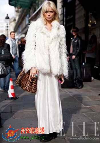 Abbey Lee Kershaw的这身造型可以说是她出演的几个广告大片的集合:白色羽毛装让人想起了她和超模Freja Beha Erichsen演绎的CHANEL2010秋冬广告大片;Fendi Peekaboo Fur Tote让人想起了她出演的Fendi的新款女士香水"Fan di Fendi"大片。Fendi的这款豹纹包包新近很热火,太太团成员Coleen Rooney、意大利名媛Bianca Brandolini D’Adda等都曾拿着它出街。