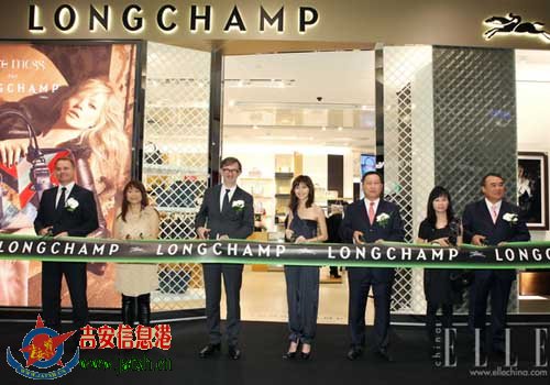 图为剪彩仪式。从左至右:Longchamp 全球业务总监Mr. Stephane Beraud;Longchamp台湾区总经理许淑悯小姐;Longchamp全球执行总裁Mr. Jean Cassegrain;剪彩嘉宾孙燕姿;Taipei 101 赵副总经理国帅先生;Longchamp大中华区总经理刘顺敏小姐;Longchamp大中华区董事沈培基先生。