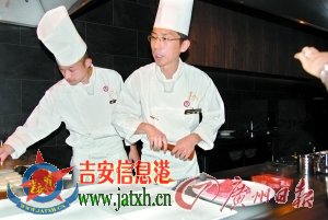 厨师在现场制作神户牛肉。