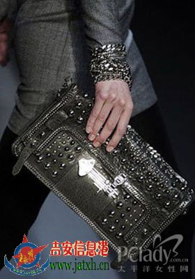 Emanuel Ungaro摇滚风演绎得淋漓尽致,铆钉链条手拿包,相当过瘾。