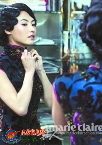 巩俐的这几套旗袍造型都是基本保持传统旗袍的模式之后的改良版,改良之后的旗袍力在突出巩俐的性感味道。