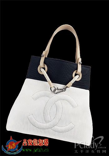 黑白拼接帆布包Chanel 黑白色拼接是永恒的经典色彩组合,浅米色手柄设计则增添许多时尚感的别致。手柄处白色帆布绳索设计代表着休闲的度假风格,摘下手柄,你也可以把它带进办公室。