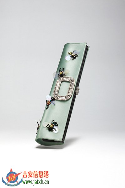 立体绣花蜜蜂与大黄蜂抢尽了水绿色绸缎的风头,配上阶梯型切割水晶扣,更是童趣十足。