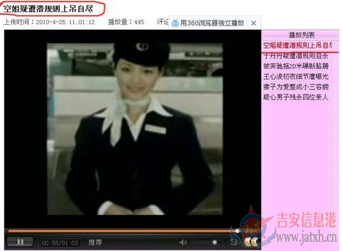 事情是这样的,前几天朋友在几个网站上看到一则“空姐疑似遭潜规则上吊自尽”的新闻,但是比较郁闷的是,这则新闻却在配图的时候选择了我在《落地请开手机》的一张剧照,不过点击了新闻链接是一则关于某空姐的让人很遗憾的新闻,好多好朋友看到这个新闻都莫名其妙,粉丝也在贴吧和博客留言里提到这件事情,向来网络上总是有一些奇奇怪怪的新闻,也就请大家见怪不怪了吧,只是用了我的照片感觉有点怪怪的,虽然是跟我一点都没有关系的新闻,但是还是给关心我的朋友一个交代吧。