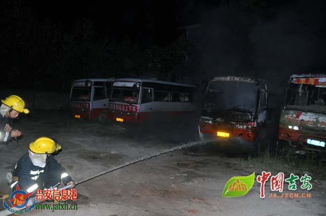 8月24凌晨1时许,吉水县石阳小区附近某停车场内一辆公共汽车无故发生自燃,火势迅猛,目击群众迅速拨打119报警。该县消防官兵到达现场后发现,一辆大巴车正猛烈燃烧,现场群众虽然进行了先期扑救,但是由于火势蔓延的非常快,都不敢靠前,只能焦急的等待救援。随后,在吉水消防官兵的竭力扑救下,大火最终被扑灭。图为,灭火现场。