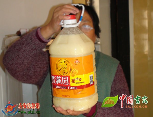 “买的时候还是黄澄澄的花生油,就在家里放了一个晚上就变成固体了,我怀疑这个油有质量问题都不敢吃。”在匡女士的家中,她告诉记者同时倒转手里的油桶,尽管油桶已经“拿大顶”,但却没有一滴油流出。据她介绍,这桶油是上星期六在鼎泰步行街国光超市购买,名为“香满园花生香食用调和油”。4日当她准备拿出来做菜的时,却发现整桶油凝成了淡黄色的固体,她随即拿到超市要求退货,该超市服务员却告诉她,很多人购买了这种油都会出现凝固的现象,拒绝她的退货请求。“我活到了60多岁都没有见过这样的情况,这个油买过来就40多元钱,是不是便宜没好货?”匡女士说。