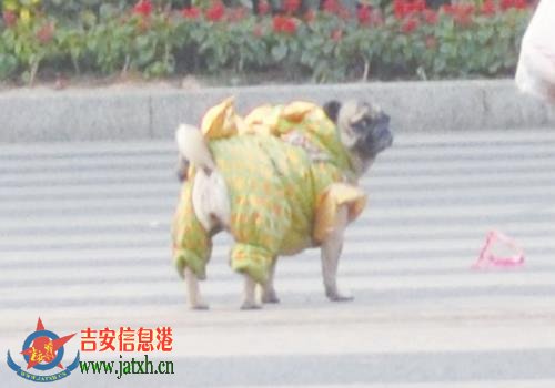 26日,一只宠物狗穿上了“龙袍”,在市中心城区井冈山大道上行走,别出心裁的有趣保暖外套引来众多市民观看。明年是龙年,民间一些以龙为题材的饰物悄然兴起,深受市民的欢迎。