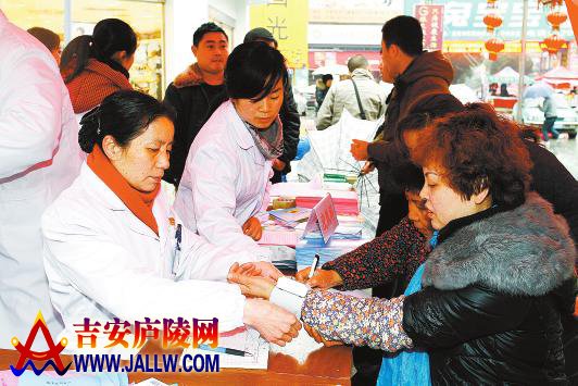 3月4日,吉州区古南街道社区卫生服务中心医疗队设点为群众服务。 记者周敏 摄