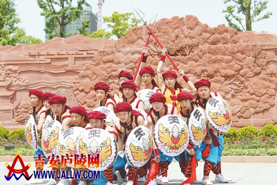 永新盾牌舞亮相庐陵文化生态园。王惠民 摄