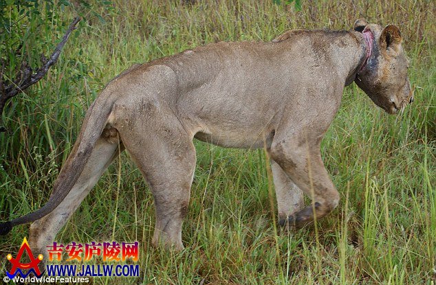 非洲狮被钢丝箍脖无法进食等死 令人心碎