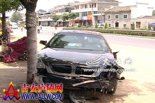 据了解,事发时涉事小车从吉安开往吉水县,行驶在105国道东线道上,经过一个T字形路口时,和一辆摩托车相撞。