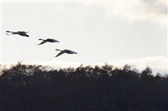 往前走着突然看到路边的小河上,飘着3只天鹅,这时我们慢慢的接近过去,准备拍一些特写。虽然我们蹑手蹑脚很注意,但当接近到大约20米左右的时候,三只天鹅还是发现了我们,然后迅速的打水起飞。这种机会当然不能错过,我迅速按下A550的Fn键,把连拍模式选到了“速度优先”,然后迅速用70-300mm镜头对准飞行的天鹅按下快门,机关枪似的拍下了它们优美的飞行姿态。