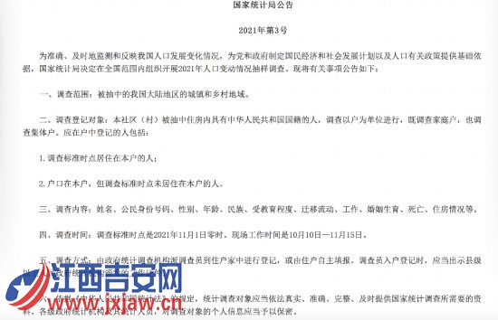 原标题:国家统计局:组织开展2021年人口变动情况抽样调查