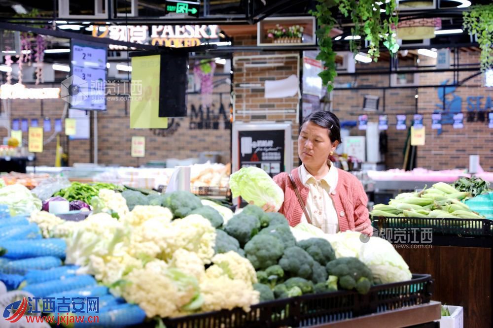2025年4月25日,市民在江西省吉安市峡江县一家超市选购蔬菜。