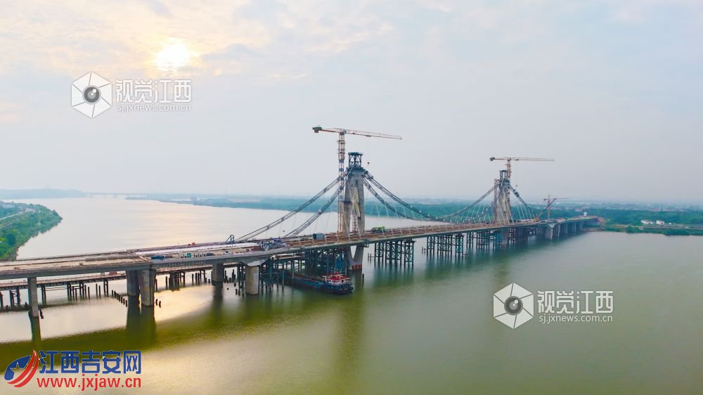 中交二航局承建的澄江大桥横跨赣江,掩映在赣江中,蓝天白云、碧波荡漾的江水、高耸挺拔的建筑与远处的山峦村庄,相互辉映,壮美如画,成为一道亮丽的风景线。