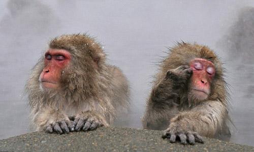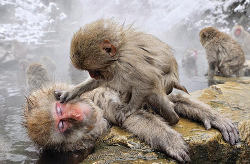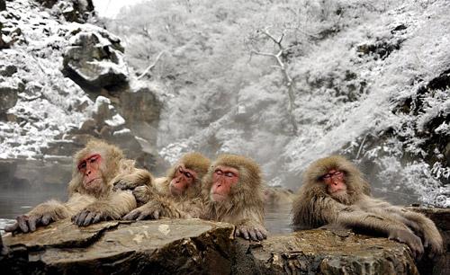 日本雪猴泡温泉 享受如痴如醉(组图)