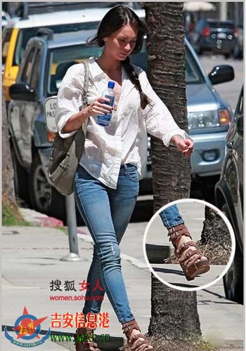 获奖理由:其实我一直看不懂megan,明明有完美的身材却常常穿着很随便,经常是带着大眼镜,穿个破T恤就跟男朋友出门了,好在这一身算是精心装点过,坡跟凉鞋和锥腿裤搭配的很完美。