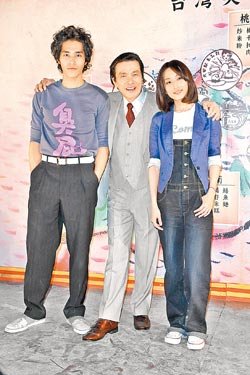 蓝正龙(左起)、猪哥亮、柯佳拍摄电影《鸡排英雄》,农历新年档期上映。(康鸿志摄)
