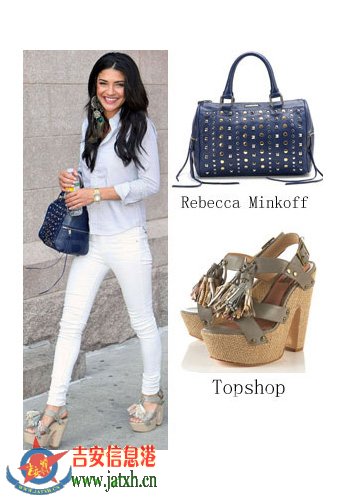 亮相产品:Rebecca Minkoff铆钉装饰手袋、Topshop厚底坡跟鞋